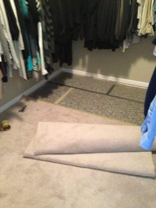 Another cat, this time in Noblesville decided to make it’s litter box the parents closet. The problem is when it’s a litter box, and its carpet, the urine sinks all the way down into the subfloor or wood or concrete or whatever is under there: