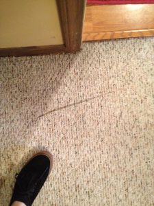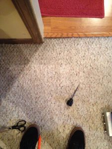 Joe went in and cut out a square piece and repaired it like new. The customer didn’t have any extra carpet so they used a piece under some furniture that wouldn’t show. What creative minds!