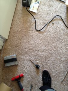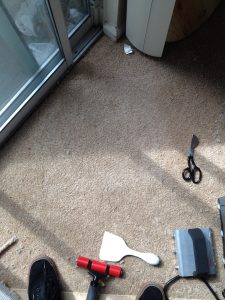 Joe got another call from a guy who said his dog must have been hungry and ate two very large pieces out of the carpet…and in their apartment!  Bummer…